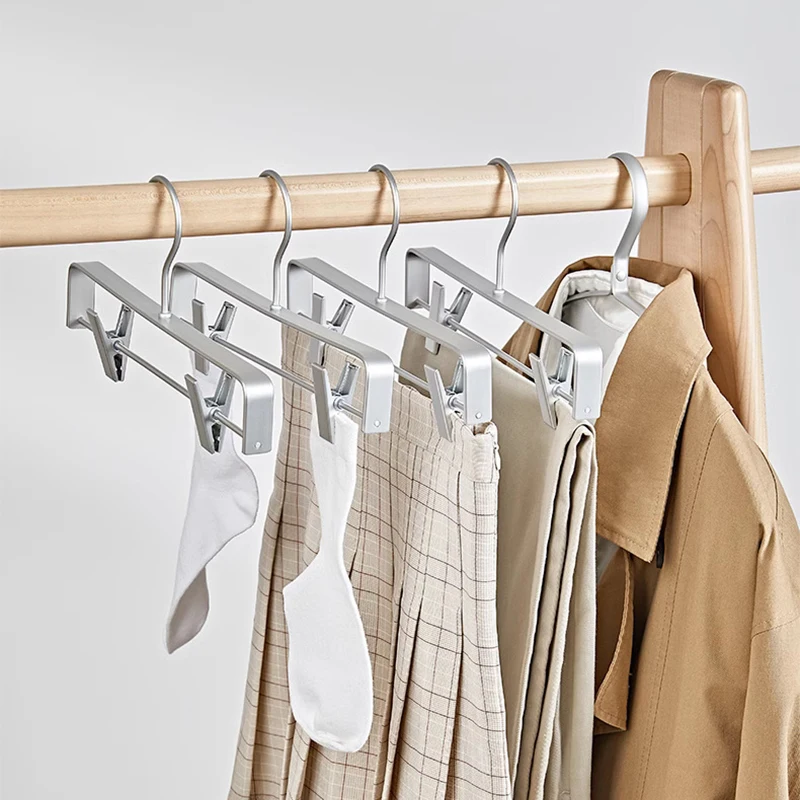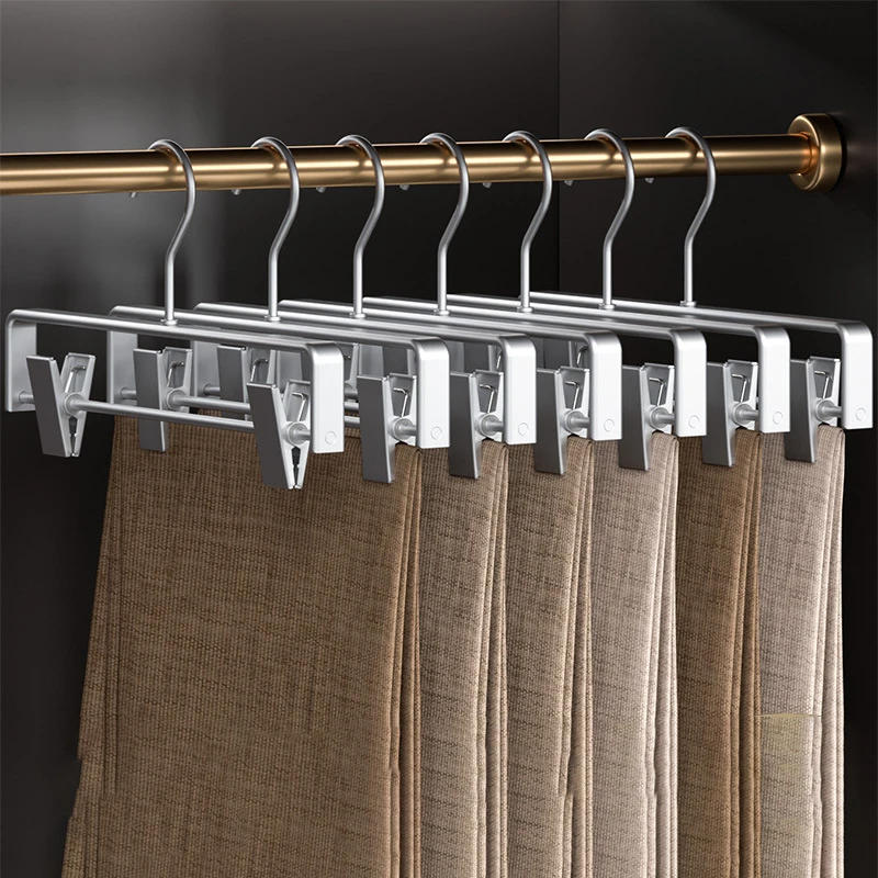 10PC,Clothes Hanger for Pants Organizer Closet Suit Trousers Hanger,42CM Aluminum Alloy Coat Rack with Clips Multi-functional