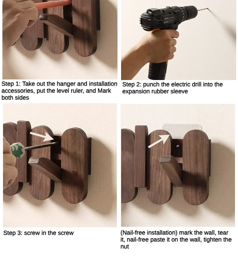 Luxury Wall Coat Rack Walnut Wood Clothes Dress Hanger Hooks Backpack Coat Pants Interior Furniture Bedroom Clothing Storage