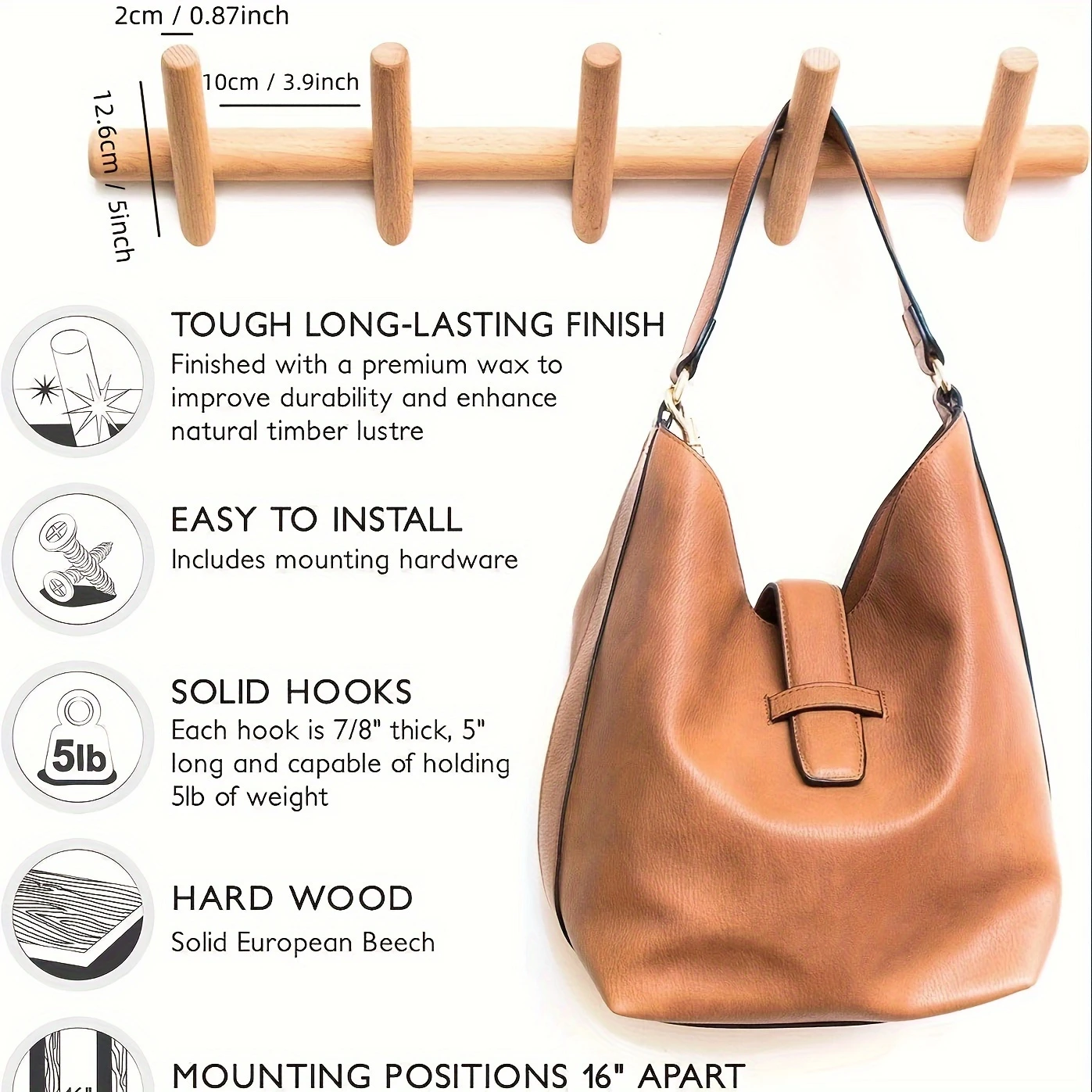 Nordic Solid Wood Coat Rack with 4/5 Hooks Wall Hanging Storage for Clothes Hat Keys Organizer Hanger Hallway Entrance Decor
