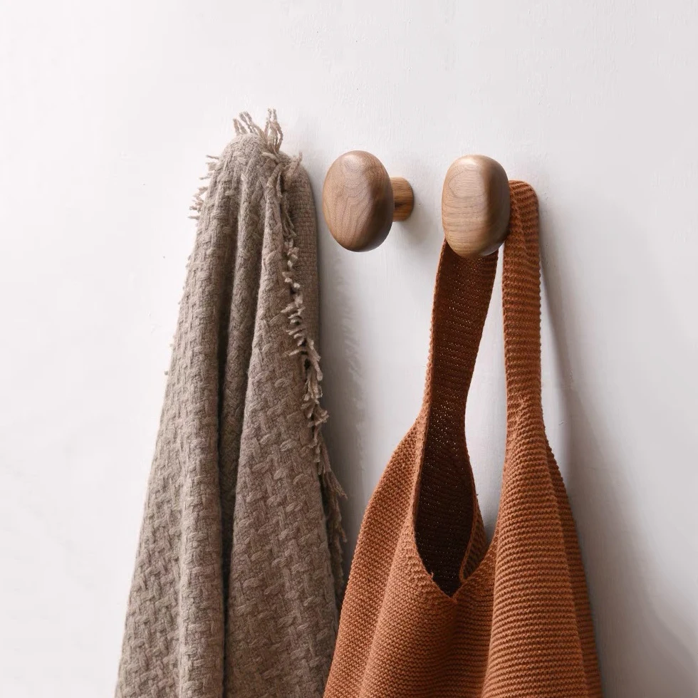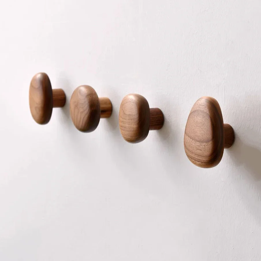 Scandinavian Solid Wood Handle Clothes Hook Coat Hook Wall-mounted Hook Punch-free Door Clothes Hanger Pebble Shape Cabinet Door